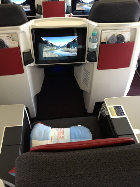 Our first flight from San Francisco to Chicago was easy and nothing spectacular. What we did not anticipate was the terminal change at ORD involving having to go outside in the midst of the "Polar Vortex" of 2014. What I thought would be a leisurely 90 minute connection ended up with us being the last to board the plane. We were a bit worried when we got to the gate and there were no other passengers, but apparently they had started boarding a little early and we still had an extra 10 minutes. Still was closer than I would have liked. Boarding a totally full plane did not give any opportunity to get a good photo of the cabin, so I will have to borrow some images from the internet.
